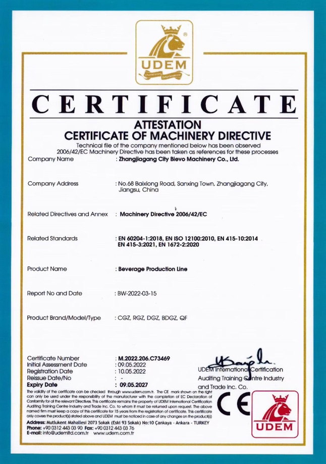 在食品和饮料机械行业,质量与安全至关重要。百沃机械始终秉持高标准制造理念,严格遵循国际质量管理体系,荣获多项行业认证,确保每台设备的高稳定性和可靠性。